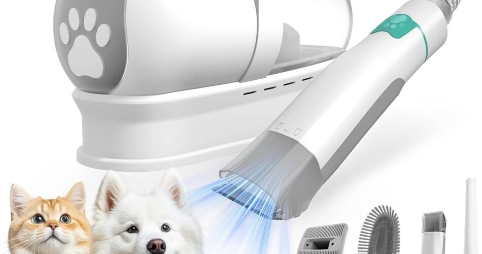 Bonus: Grooming Clipper Grinder (The 8VR Dog Grooming Kit is a versatile all‑in‑one pet grooming solution that combines a powerful vacuum system with electric clippers, a nail grinder, and multiple grooming tools to make home grooming fast and mess‑free; its integrated vacuum captures up to 99 % of loose fur as you trim, reducing shedding around your home, while six adjustable guide combs ensure precise fur trimming for different coat lengths, and the low‑noise design with adjustable suction levels keeps pets calm and comfortable throughout the grooming process, complemented by a detachable dust cup and flexible hose for easy cleaning and extended reach.)